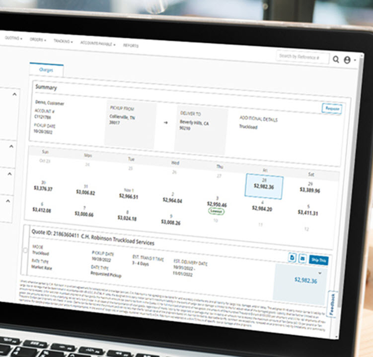 依托 C.H. Robinson 的 Freightquote®,您可以访问经过审查的优质特约运输公司,省时省钱。简化您在北美各地的货运报价和预订方式并使之自动化。依托我们的小型企业 TMS — Freightview®,您可以直接比较价格并向首选运输公司订舱。